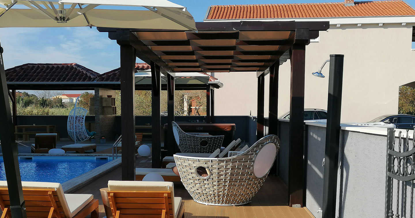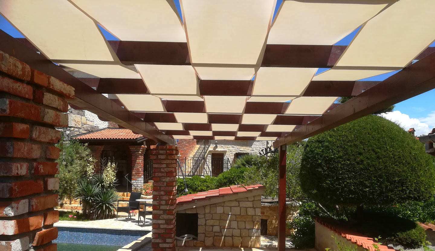 Ukoliko se želite zaštititi od raznih vremenskih prilika na moru ili samo uživati u debelom hladu za vrijeme jakog sunca, nudimo vam širok raspon materijala koji će vam to omogućiti.